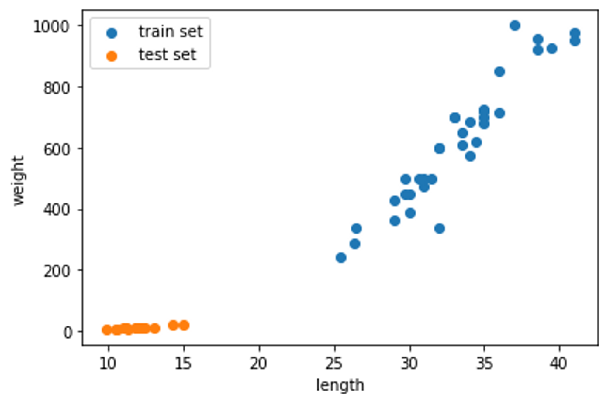 - 훈련 세트와 테스트 세트를 나누기 전에 데이터를 잘 섞거나 골고루 샘플을 뽑아서 훈련 세트와 테스트 세트를 만들어야함