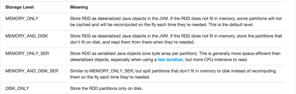 - Storage Level을 사용자가 원하는대로 지정 가능